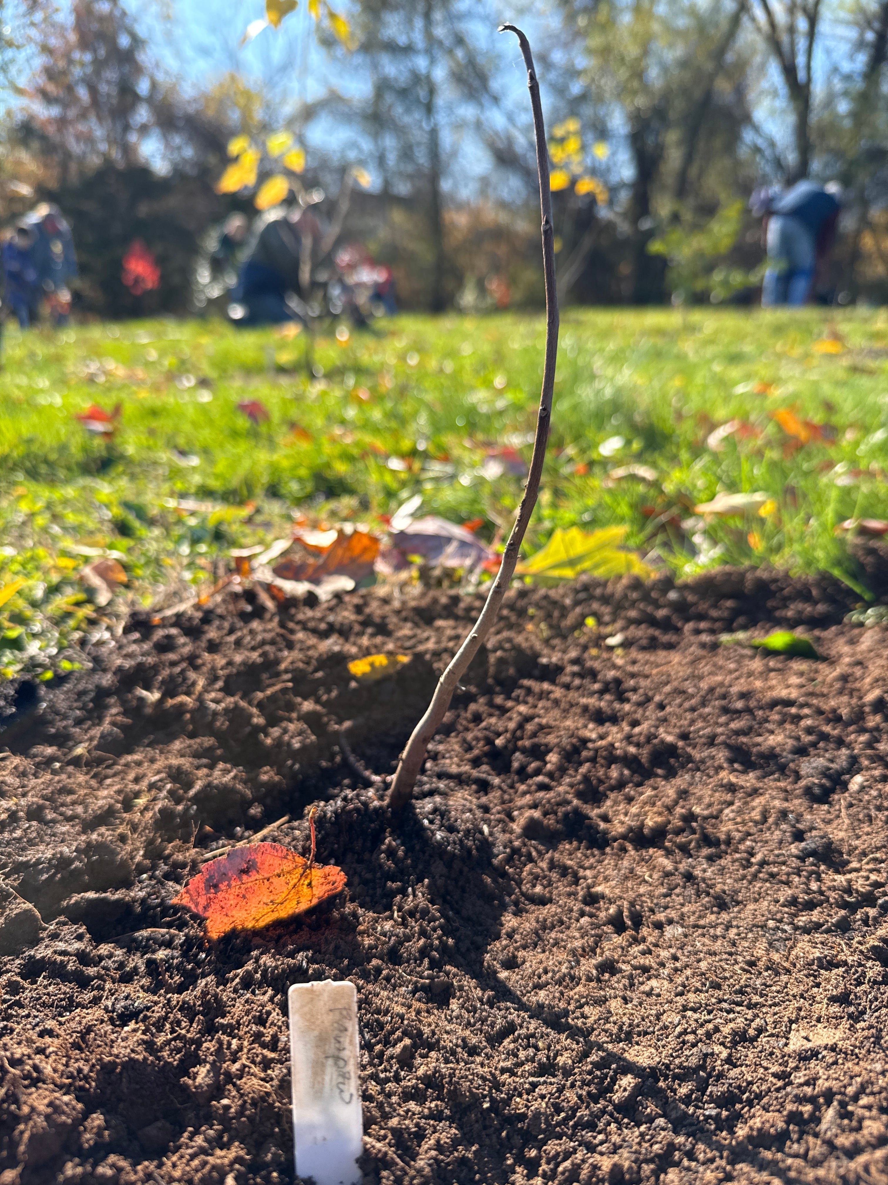 “In late 2024, my husband, Paul, suggested the Moody Elementary School site, which [commission member] Jane and I agreed looked promising. It is City-owned, easily accessible, presents educational opportunities for local school students, and has good soils (confirmed by soil tests). We presented the proposal to the Board of Education’s Facilities Committee, and they approved it on condition that the trees would be ID labeled and a photographic record would be kept. The Moody school’s principal and grounds staff were also supportive.” Steve writes.