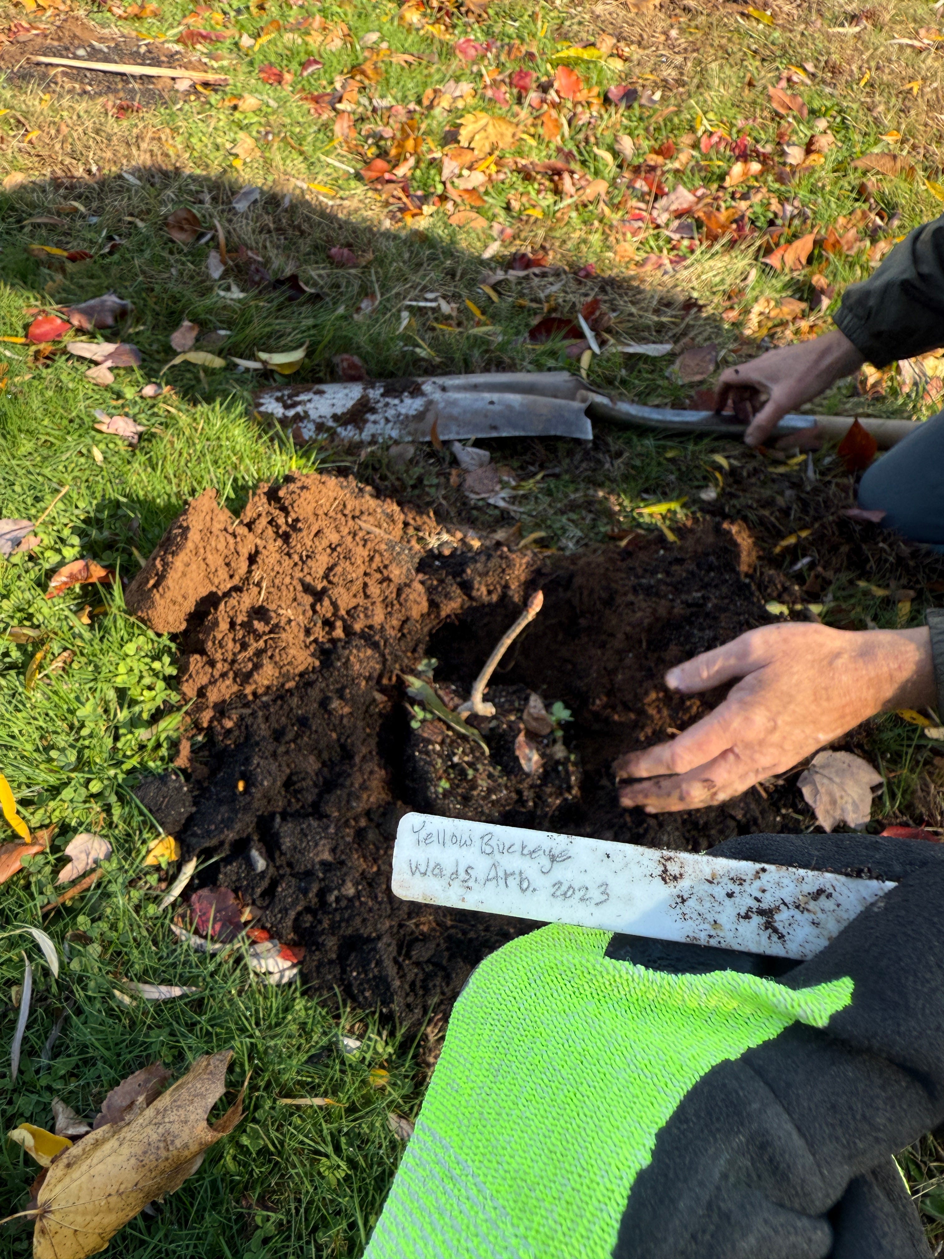 “Will the trees actually grow so close together?” A nearby volunteer was asking while I was digging a hole for my first native tree, a Pignut hickory, or in Latin, Carya glabra.